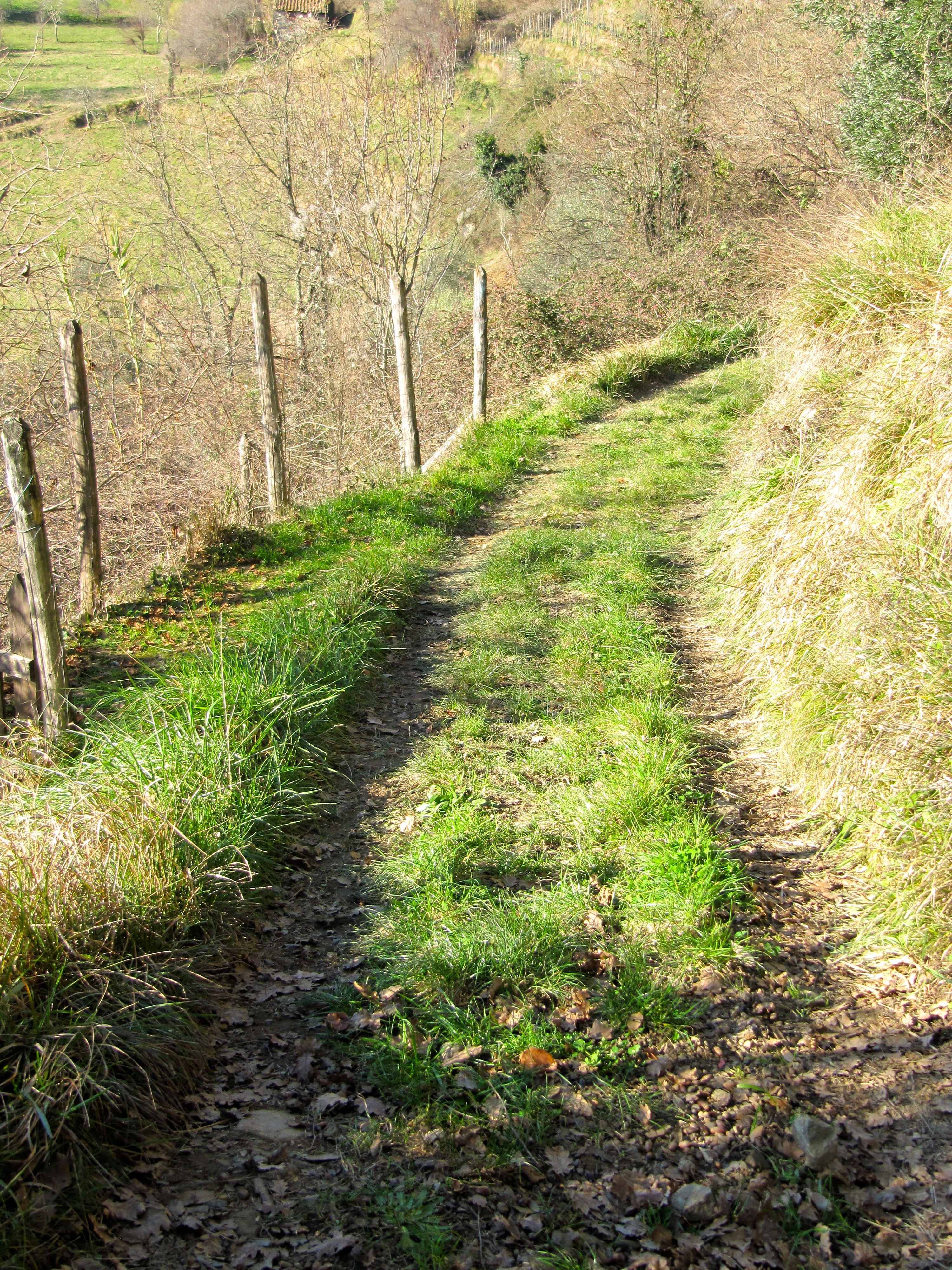 From the main car park walk down the slope towards the houses then turn right onto the old mule track.